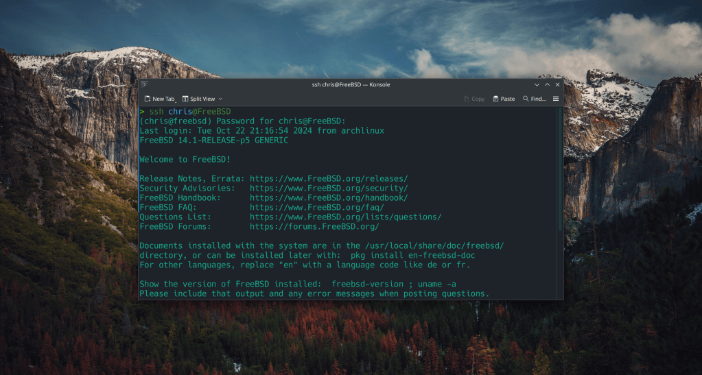SSHing into a FreeBSD Virtual Machine and playing with ZFS