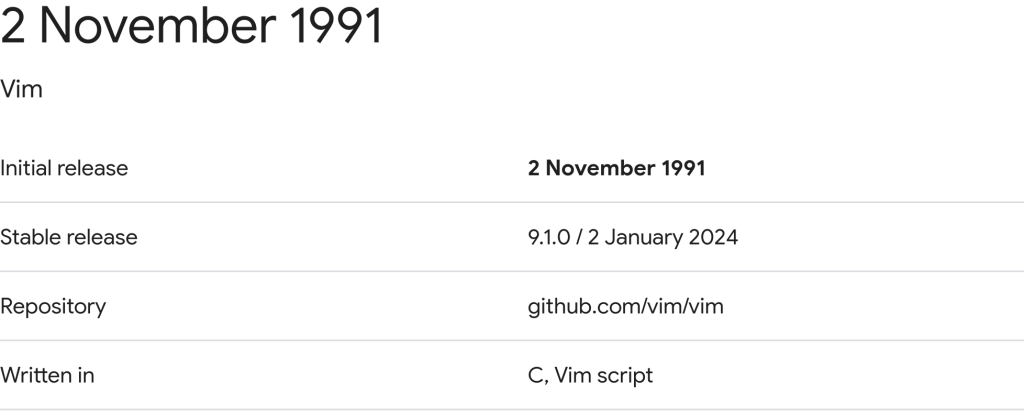 On November 2nd, 1991, Vim was released
