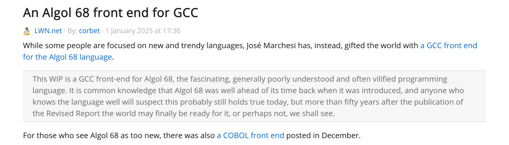 GCC Algol 68 front end