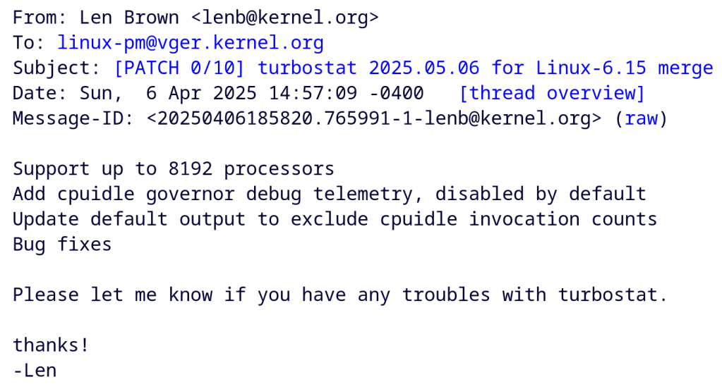 https://lore.kernel.org/linux-pm/20250406185820.765991-1-lenb@kernel.org/