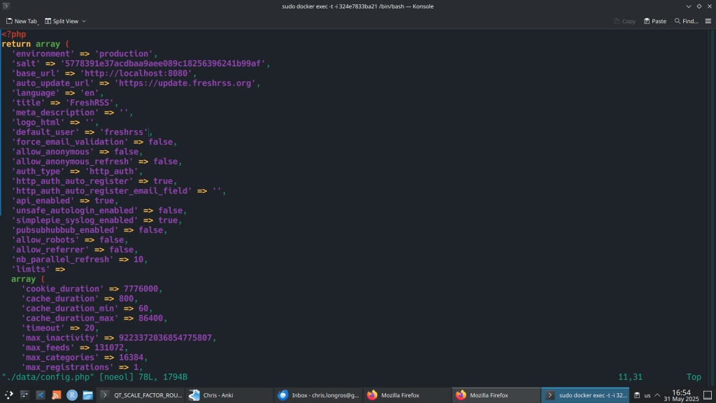 - vim ./data/config.php