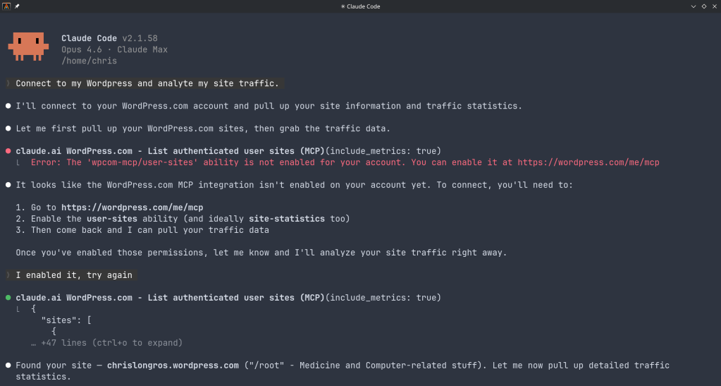 “The WordPress.com MCP server allows AI assistants to securely interact with your WordPress.com sites. It exposes tools for listing, searching, and viewing posts, pages, and comments, managing users and site settings, and retrieving statistics. By leveraging OAuth 2.1, it ensures that agents only access resources you’ve approved, making it easy to integrate AI-driven workflows into your publishing experience.”