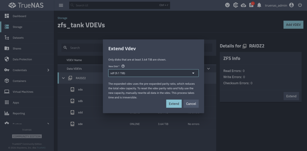 RAIDZ2 pool expansion with my new 10TB Ironwolf HDD
