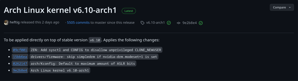 Aug 13 21:13:03 archlinux kernel: Linux version 6.10.4-arch2-1 (linux@archlinux) (gcc (GCC) 14.2.1 20240805, GNU ld (GNU Binutils) 2.43.0) #1 S>