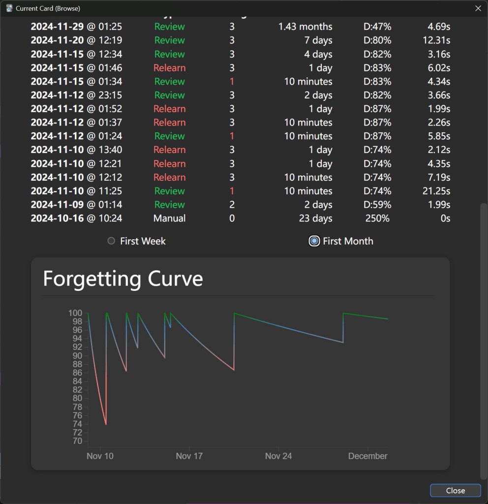 “Recency weighting makes FSRS pay less attention to older reviews and more attention to recent (newer) reviews.