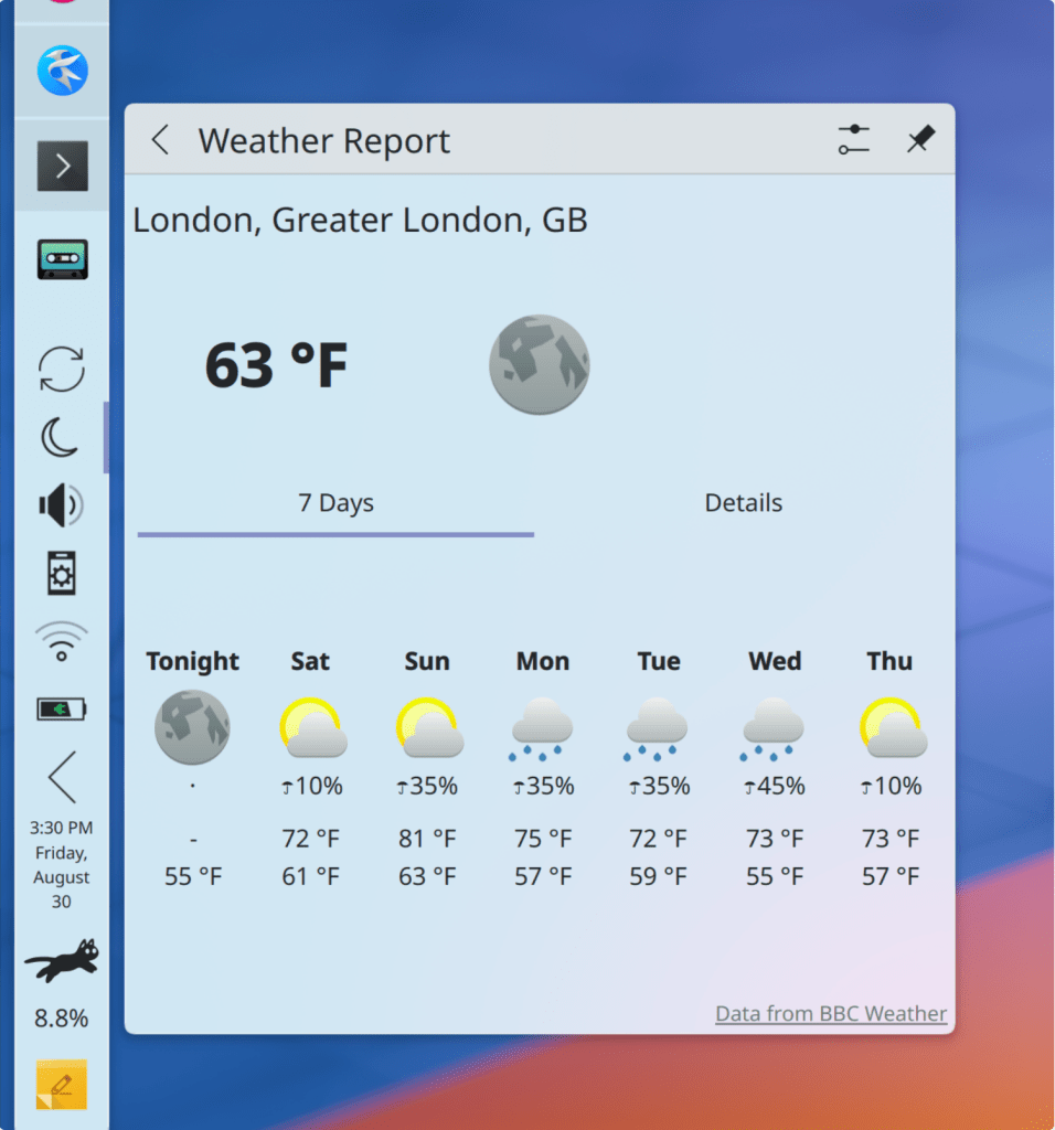 The weather widget has now precipitation probability from BBC