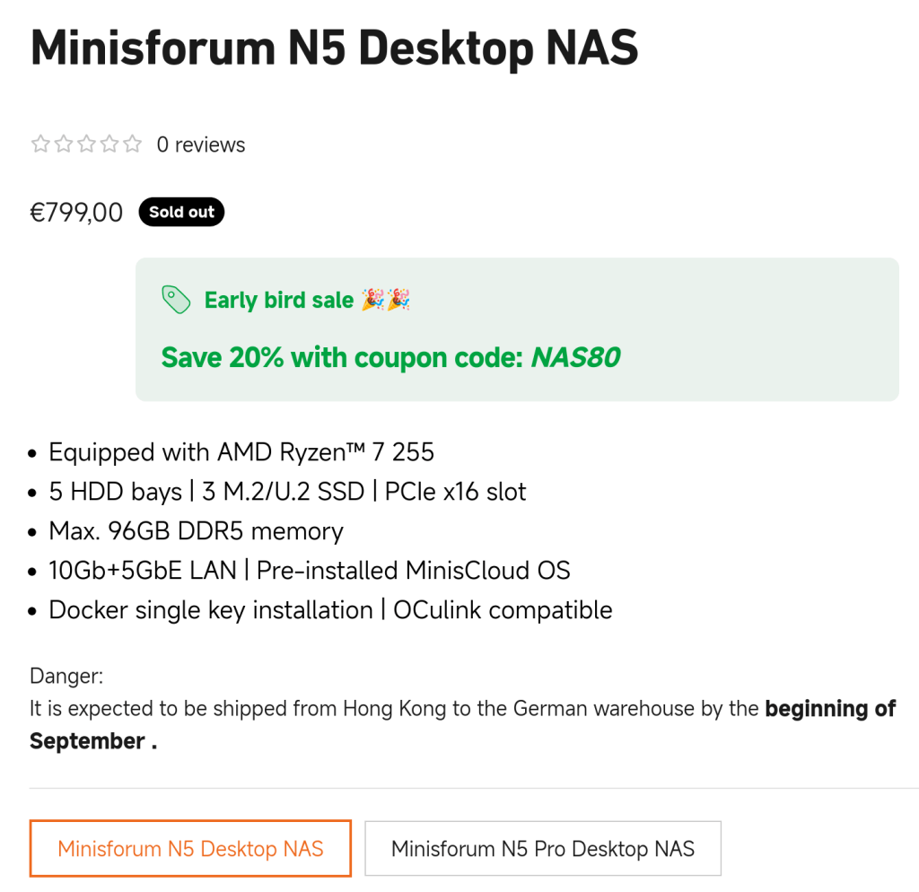 I was between Ugreen DXP4800Plus and Minisforum N5 as a second backup solution but the later is already sold out !!