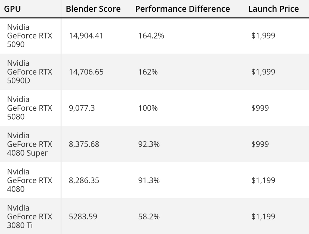 “RTX 5080 outperforms RTX 4080 by 10% in Blender benchmark — only 8% higher than RTX 4080 Super”
