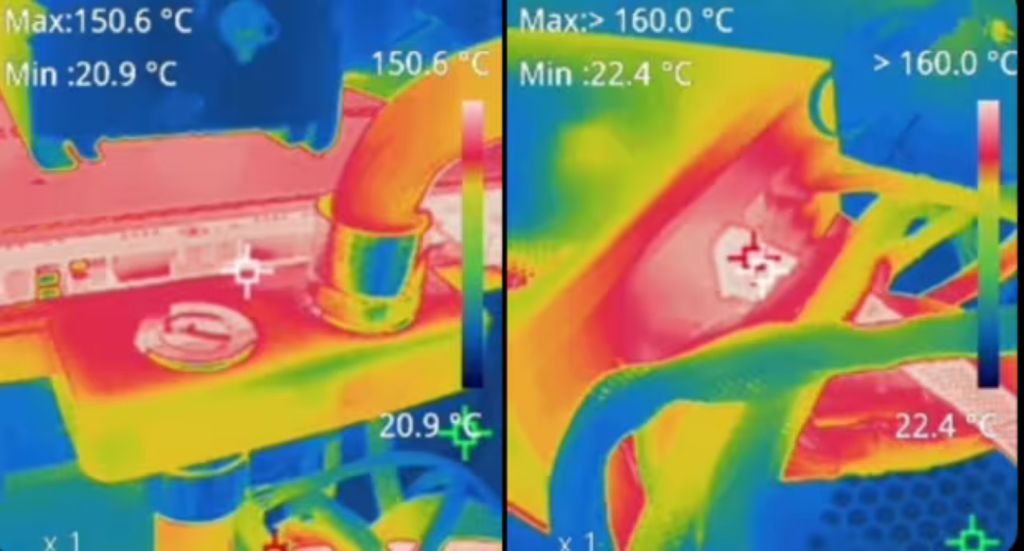 The graphic card reaches an insanely hot 150C temperature with a 12V-2×6 power cable.