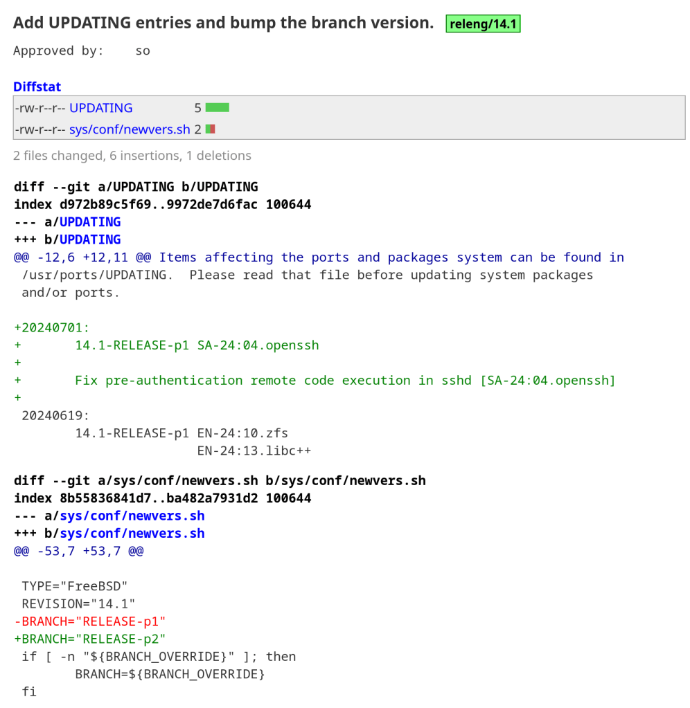 FreeBSD got a 14.1 p1 update due to this OpenSSH vulnerability
