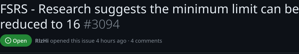 1000 reviews are currently necessary to perform an optimization of FSRS parameters. However new data suggest that this limit could be as low as 16.
