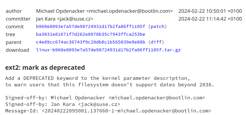 It does not support inode time stamps beyond 03:14:07 UTC on 19 January 2038, the so-called Y2038 problem.