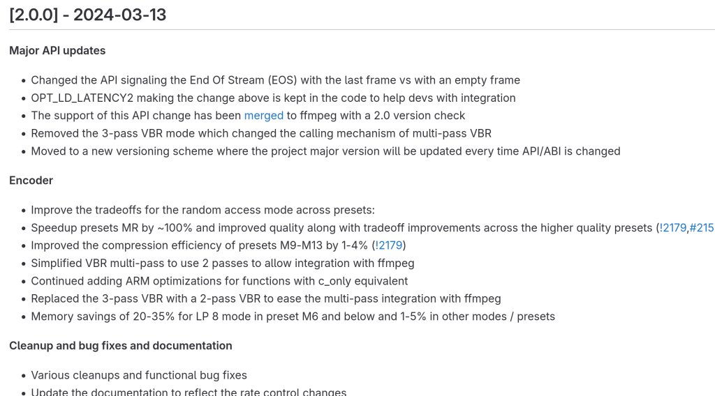 New version of Intel’s AV1 video encoder that offers significant speed-ups after API improvements.