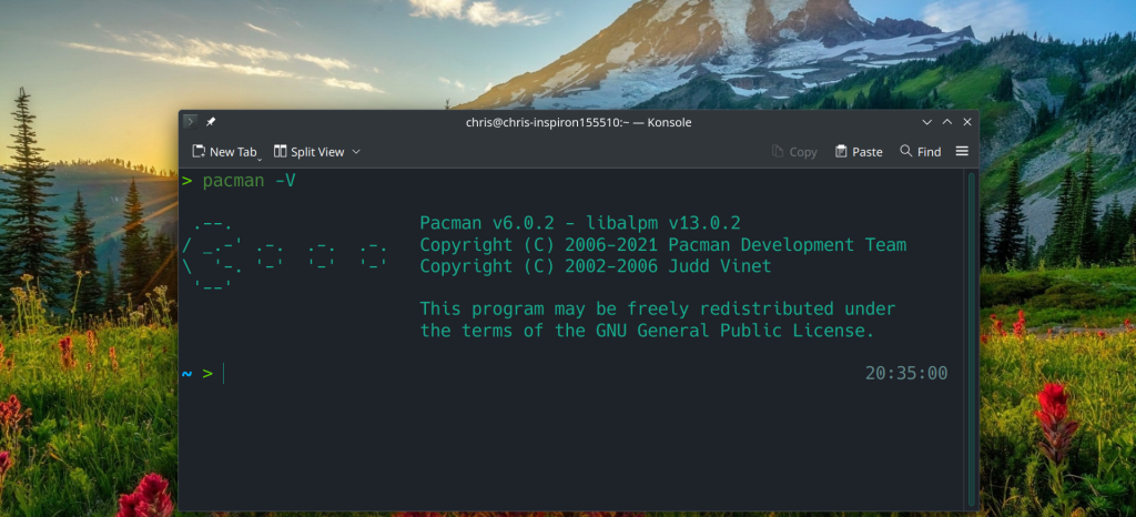 .–. Pacman v6.0.2 – libalpm v13.0.2 / _.-‘ .-. .-. .-. Copyright (C) 2006-2021 Pacman Development Team \ ‘-. ‘-‘ ‘-‘ ‘-‘ Copyright (C) 2002-2006 Judd Vinet ‘–‘ This program may be freely redistributed under the terms of the GNU General Public License.