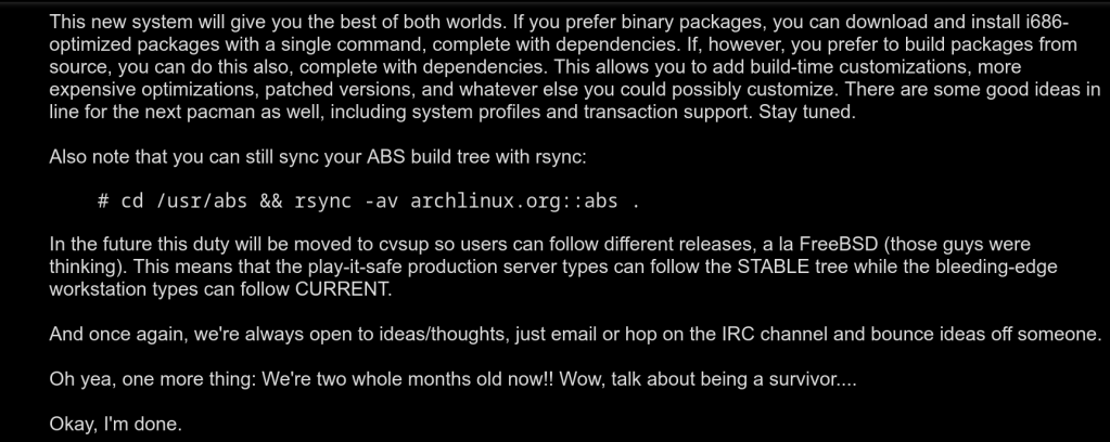 We highly advise anyone who runs an rsync daemon or client prior to version 3.4.0-1 to upgrade and reboot their systems immediately. As Arch Linux mirrors are mostly synchronized using rsync, we highly advise any mirror administrator to act immediately, even though the hosted package files themselves are cryptographically signed.
