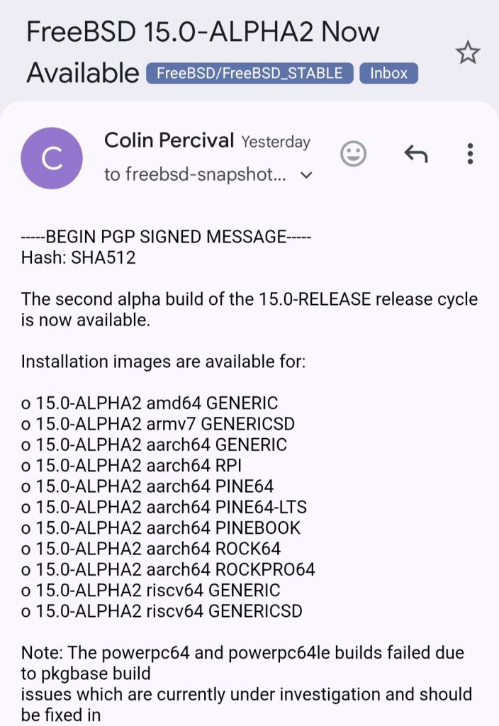 FreeBSD 15 become officially a production release.