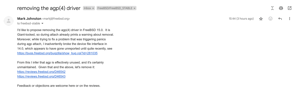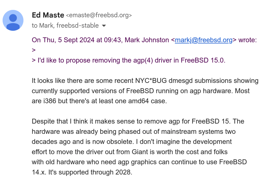 To the above responded Ed Maste: