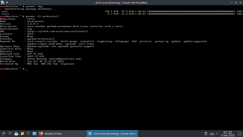 Comes with 6.4.12 Kernel and archinstall 2.6.0-1, a python installation script