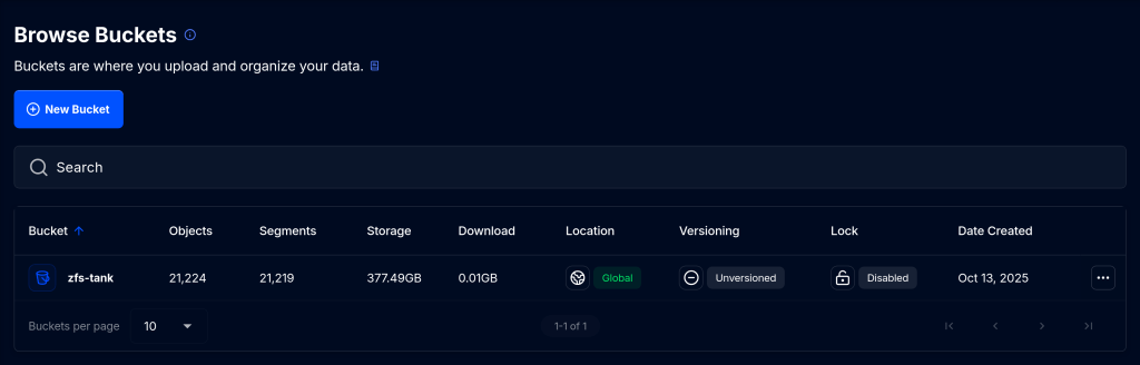 The first step is to set up an iX-StorJ account and create a bucket. The Starter Pack plan costs $150 per year and includes up to 5 TB of storage.